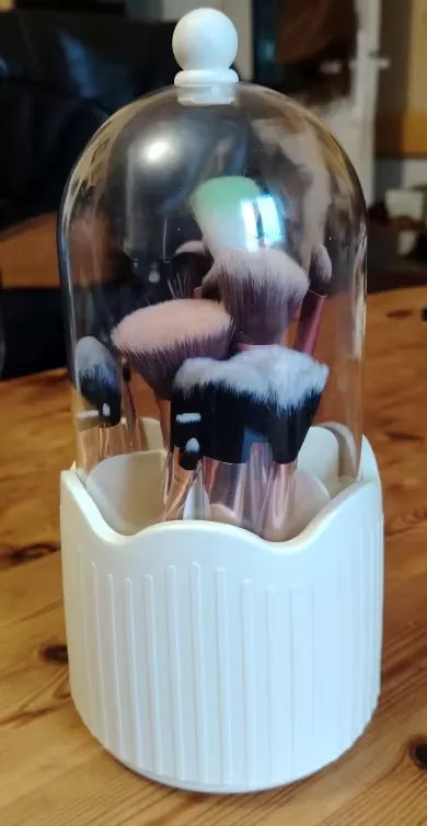 Este porta-maquiagem é um salva-vidas! Adoro como tudo parece organizado agora. E essa funcionalidade de girar é divertida! 😂